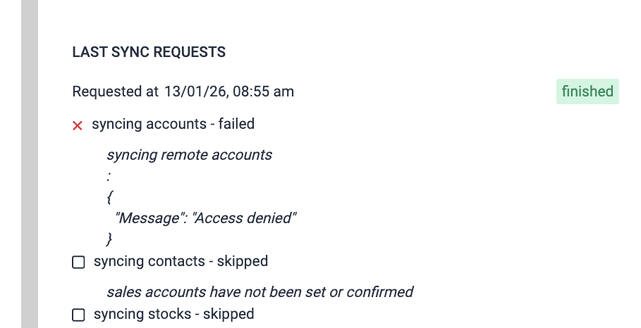if your MYOB integration is not syncing with MechanicDesk, the most common cause is incorrect login credentials in the Accounting integration settings panel. The usual error displayed is “Access denied.”
